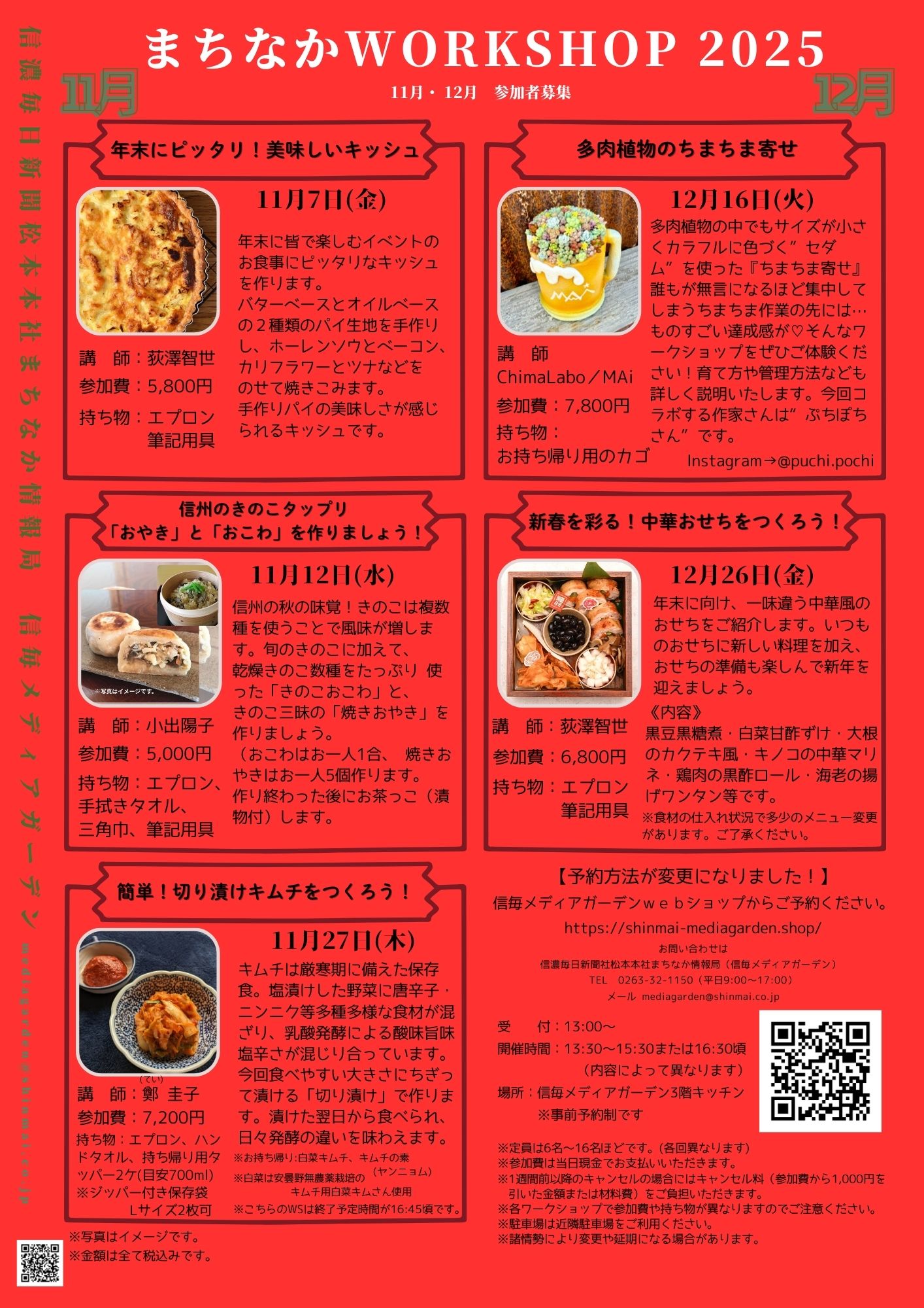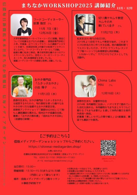 2025年11月の【まちなかワークショップ】も多彩な講座をご用意しました。