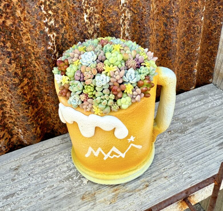 多肉植物の中でもサイズが小さくカラフルに色づく”セダム”を使った『ちまちま寄せ』