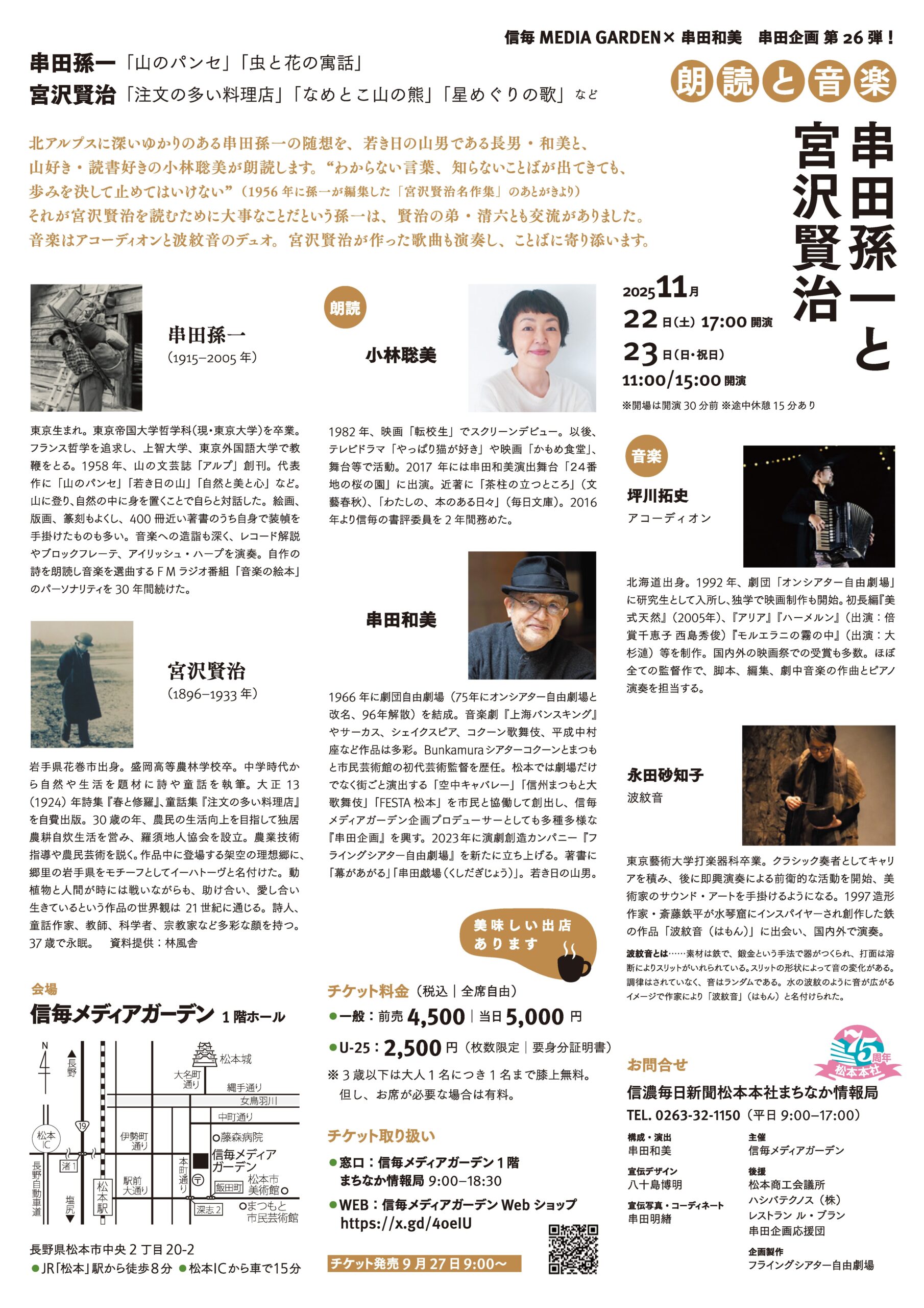 ※開場は開演30分前 ※上演時間1時間50分(途中15分休憩あり)