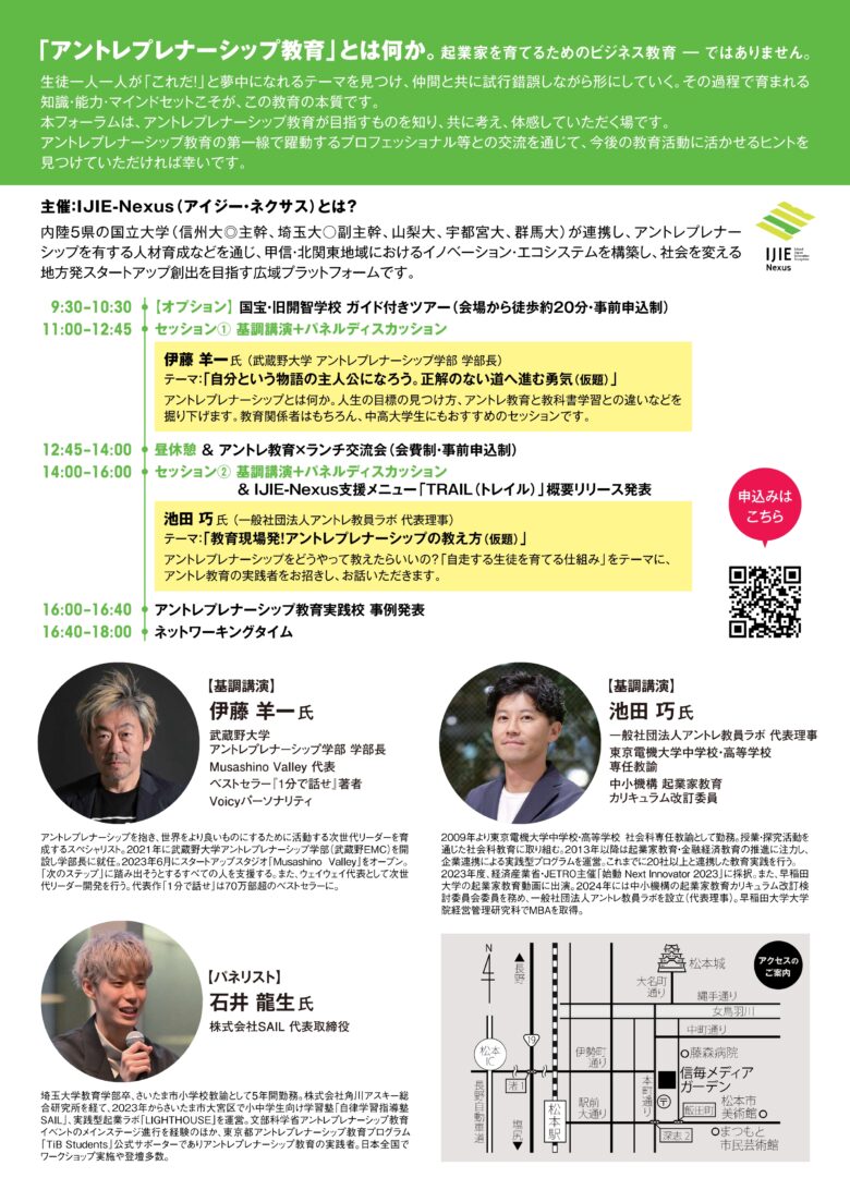 • 基調講演②(14:00〜16:00)池田 巧 氏(一般社団法人アントレ教員ラボ 代表理事)ほか