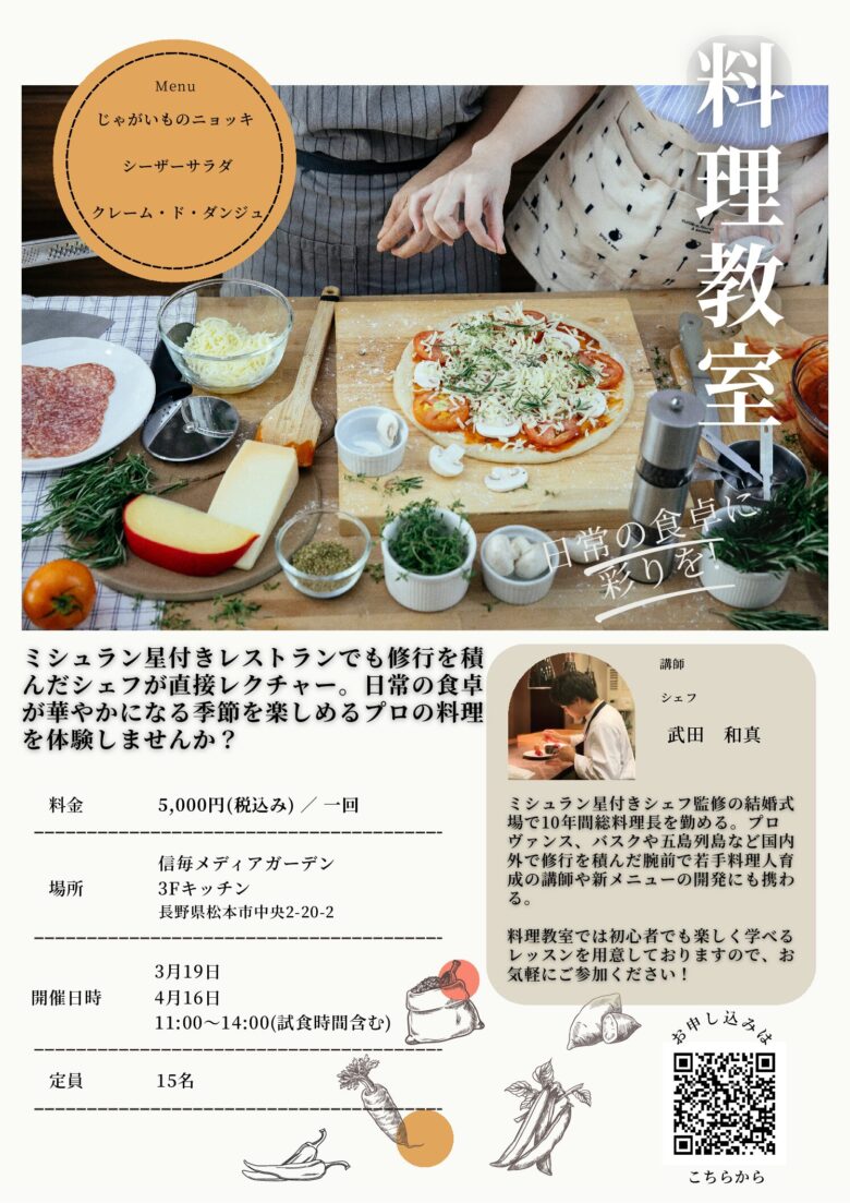 ミシュラン星付きレストランでも修⾏を積んだシェフが直接レクチャー ⽇常の⾷卓が華やかになる季節を楽しめるプロの料理を体験しませんか?