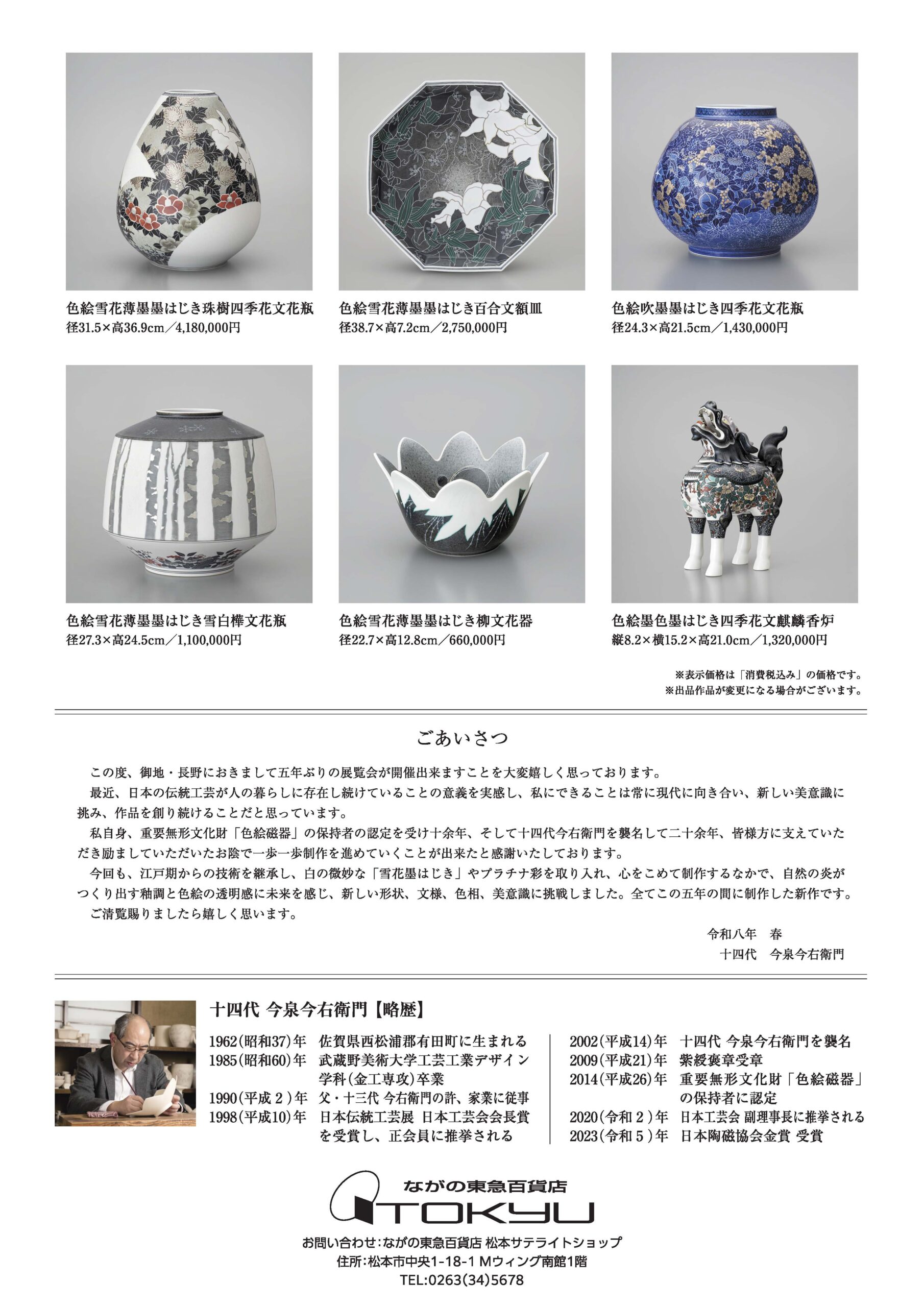 人間国宝 十四代今泉今右衛門展 松本プレビュー展
